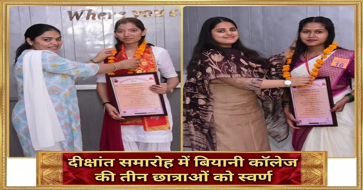 दीक्षांत समारोह में बियानी कॉलेज की तीन छात्राओं को स्वर्ण पदक